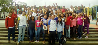 Ciudad Guayana.- La juventud revolucionaria de Caroní perteneciente a la matrícula de distintas casas de estudios de Ciudad Guayana, acompañada de líderes del Frente de Jóvenes Manuel Piar, se concentraron desde muy tempranas horas de este miércoles en la plaza Bolívar de San Félix, para hacer un llamado a patriotas y a todas las organizaciones que trabajan por el proceso de transformación que busca la reciedumbre del socialismo, para invitarlos este jueves a una marcha por la paz y respaldo de las acciones que protegen al pueblo, impulsadas por el presidente de la República, Nicolás Maduro.